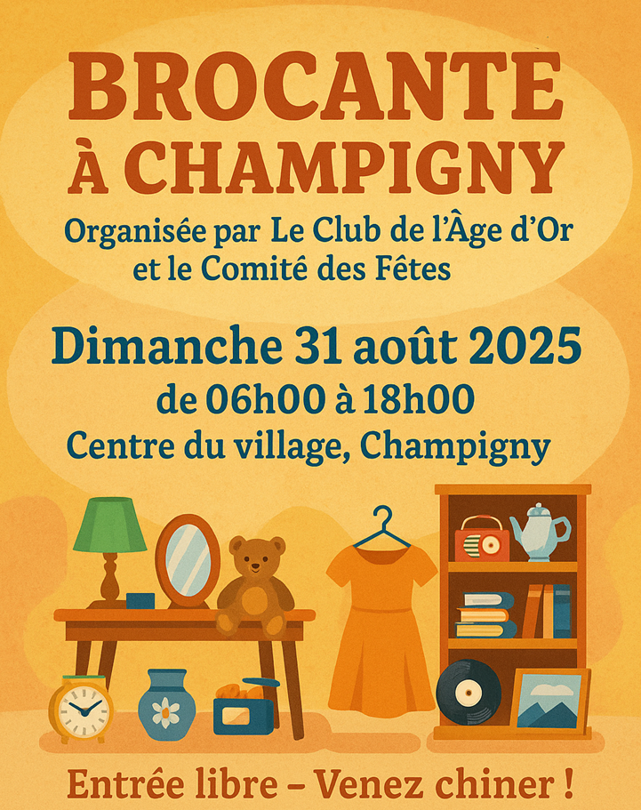 Le club de l’Age d’Or et le Comité des fêtes organisent leur brocante annuelle le dimanche 31 août 2025 à partir de 6 heures au centre du village.