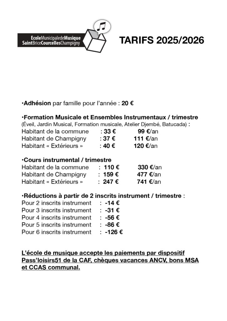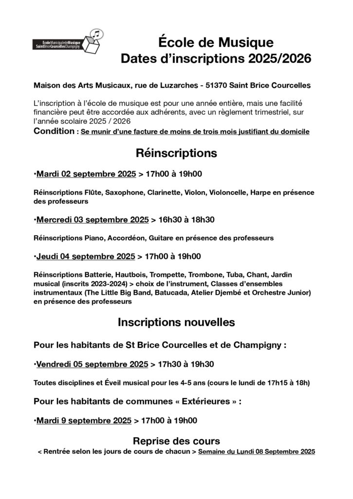 Inscription à l’école de musique de Saint-Brice-Courcelles saison 2025-2026