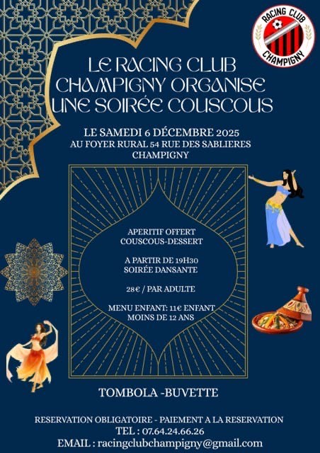 Le Racing club de Champigny organise sa soirée coucous le 6 décembre 2025 à 19h30